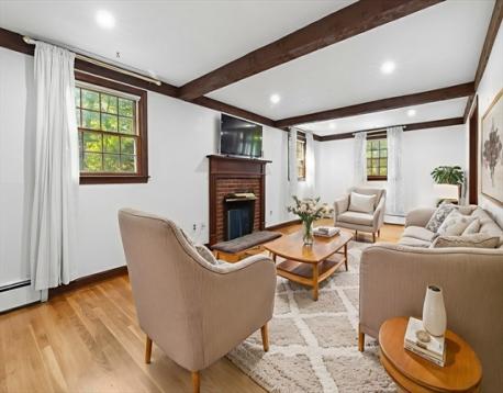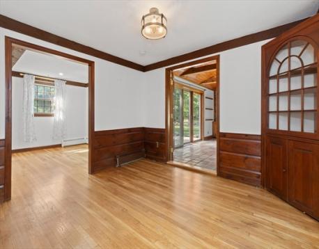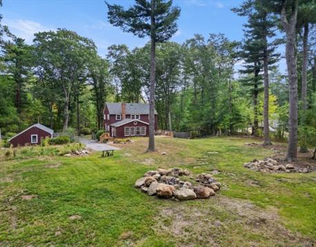 Surrounded by stately trees on a lovely 2-acre lot in scenic Boxford, this center-entrance Colonial offers privacy & many opportunities for outdoor fun & entertaining – on or off the spacious deck & in the massive backyard. 4 bedrooms, 2.5 baths & 2,000+ sf of living space allow room for everyone. A fireplace gives off cozy vibes in the front-to-back LR, & the dining room has a built-in china cabinet. The kitchen is open to an oversized eating area w/ a pot-belly wood stove. In addition to built-in window seats, large windows & wood stove, the sprawling family room has access to the deck & yard. Upstairs, hardwood flooring is in all 4 bedrooms & the primary en suite boasts a step-in shower. The main bathroom has the most charming square tub/shower combo. Unleash your imagination in the full basement: more living-play space, office, storage, etc. New roof, deck, & water system, updated electrical & 3 bay garage are just some of the hallmarks of this great home! Showings begin Saturday.