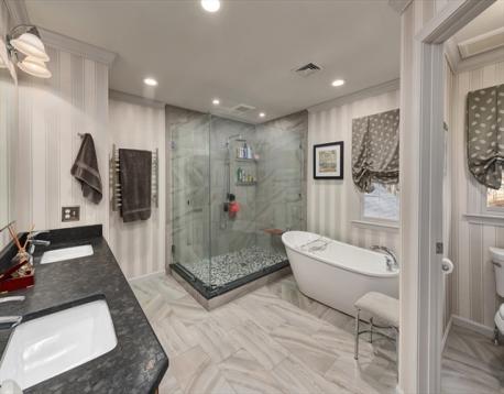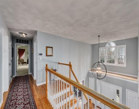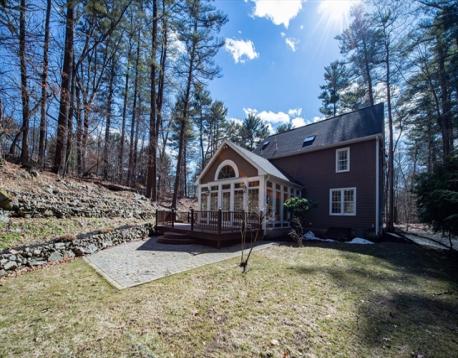 Fabulous newer Colonial set on 2+ acres in a cul-de-sac location in desirable East Boxford. The open main level features a kitchen with island and counter seating, dining area, and a stunning family room with cathedral beadboard ceiling, three walls of windows, and a built-in bar with beverage fridge and dishwasher. A fireplaced living room flows off the kitchen, with a dedicated office, dining room, and sitting area completing the first floor. Upstairs, the primary suite offers a dressing room and spa-like bath with soaking tub, oversized shower, and private water closet. Three additional bedrooms, a double-vanity bath, and laundry room with sink complete the second level. The third floor offers a versatile guest suite or bonus space with full bath. Outdoor space features a wrap around deck, patio, firepit and bocce court! Full basement with high ceilings offers expansion potential. Minutes to top schools and commuter routes.