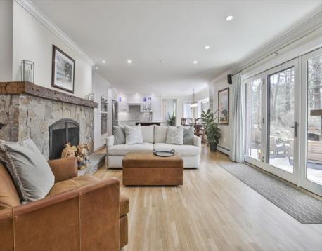 Tucked in a cul-de-sac off the Surrey Lane neighborhood, this thoughtfully updated home offers a comfortable, easy layout for everyday living and entertaining. Mornings begin in your breakfast nook with window seat, coffee in hand, views into wooded privacy. The kitchen with white quartzite and island seating for 4 is designed for how you cook, gather, and linger. The family room centers around a stone fireplace, creating a warm, inviting space to relax or host. Glass doors open to a stone patio with outdoor fireplace for easy indoor-outdoor living. First-floor primary suite offers a steam shower, heated floors, and the ease of no stairs. Upstairs, 3 bedrooms plus an office provide flexible space for a variety of needs. The reimagined mudroom suite with floor-to-ceiling organization adds everyday function, with adjacent unfinished space offering room to expand, while the walkout lower level adds further potential. Set among landscaped grounds and privacy, this home lives beautifully.