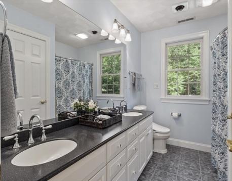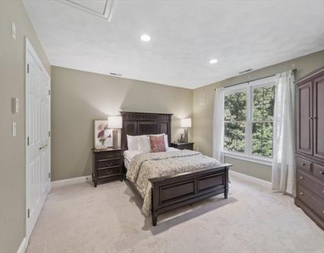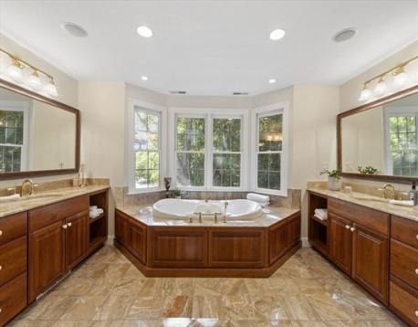 West Boxford cul-de-sac neighborhood in convenient location minutes from Rt. 95. Beautiful Colonial w/ a dramatic entry into a double foyer w/ marble flooring, Home Office & front to back Living Room/Dining Room combination, all with hardwood floors w/ Mahogony inlay and crown moldings. Custom built ins separate formal Living Room with gas FP and DR which leads into the amazing well-appointed Kitchen w/ a 5 burner gas stove & large vent hood, 2nd built in oven and microwave, walk in panty & center island w/ seating in addition to dining area w/ slider to patio. Large family room w/ stunning FP, vaulted ceiling, skylights & sliders to patio. 4 substantial bedrooms on second floor, 2 en-suite. The primary bedroom is sizeable w/ a gas FP, front to back walk in closet and an impressive primary bath w/ a separate shower, 2 individual counters/ sinks & a jacuzzi separating them. Perfect backyard for an inground pool & LL is set up for an in-law or au pair or guest suite w/private entrance.