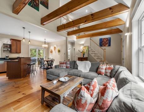 Modern design meets timeless New England charm. Set on over 2.5 private acres in West Boxford, this 2014 custom Cape blends thoughtful design, natural light & everyday comfort. A welcoming mudroom opens to a first floor anchored by exposed beams & a country kitchen w/ stainless appliances & a farmer’s sink, flowing into open dining & living areas enhanced by wide pine floors, custom finishes & the warmth of a Harmon pellet stove. Seamless flow to a TimberTech deck creates easy indoor-outdoor living. The first-floor primary suite is a retreat w/ spa-inspired bath—soaking tub, walk-in shower w/ built-in seat & luxury finishes. Upstairs offers two spacious bedrooms, a full bath & flexible loft or den. Expansive unfinished basement w/ high ceilings—ideal for future finishing. Moments to Brooks School, Paisley’s Farm Stand, Benson’s Ice Cream & Butcher Boy Market. Comfortable, refined & distinctly New England.