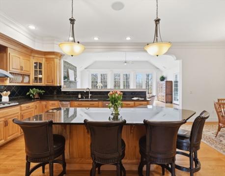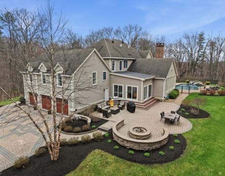 Welcome home to this LUXURY Boxford Colonial home, set on over 6 acres abutting Far Corners Golf Course. This 5 bedroom, 4.5 bathroom estate offers vacation style living at its finest, anchored by a stunning heated Gunite in-ground pool with waterfall. Inside, a sunlit gourmet kitchen, formal living with fireplace (with fresh interior paint) spacious family rooms, and a soaring 2nd floor Great Room with cathedral ceilings set an elegant tone. Four bedrooms enjoys there own private bath, while the primary suite (with fresh interior paint) features a walk-in closet and spa-inspired bath. The walk-out lower level offers a custom dance studio, media room, and dedicated entertainment space. Outside, the pool, spa, firepits, multiple patios, and professionally landscaped gardens create a truly private outdoor sanctuary. 3 car garage and plenty of guest parking. Convenient Route 95 access, and a coveted cul-de-sac setting make this a rare opportunity not to be missed.