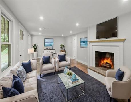 NEW CONSTRUCTION in a popular neighborhood just minutes from Rt.95 in East Boxford! The masterfully built home on the pre-existing foundation is clearly one of a kind. This is a stunning 4-bedroom, 3.5 bath home featuring an Open Floor Plan, w/ a 1st floor HomeOffice, Laundry Room, & Primary Bedroom. The Kitchen is truly the heart of the home, full of natural light & is a dream to prepare meals in. The expansive quartz Island adds so much space to work, in addition to providing more storage. The Dining area flowing into the Living Room w/ a brick FP creates a warm & cozy place for large family gatherings or everyday life. The 2nd floor offers 3 generous sized bedrooms w/large closets & a full bath. The Lower-Level Family Room features a walk-out & a full Bathroom for convenience. With a new roof, all new siding, windows, flooring, electrical, plumbing, appliances, garage doors, there's no need to budget for future repairs! NEW 4 Bedroom Septic, Driveway, Retaining Walls & 27 x 10 Deck.
