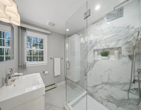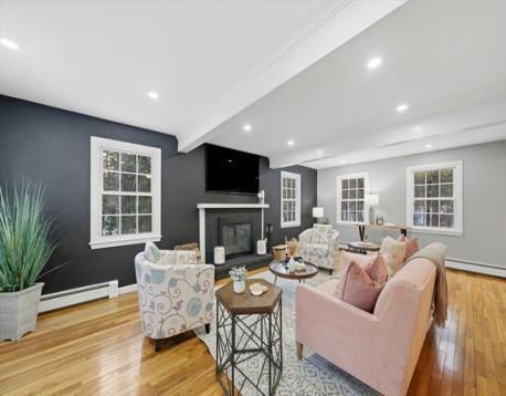 Set in desirable Boxford, this beautifully updated 4 bedroom 3 full bathroom home offers a perfect balance of timeless New England charm and modern comfort. Sun-drenched interiors showcase gleaming hardwood floors, a striking fireplace living room with a bold accent wall and an effortless layout designed for both everyday living and entertaining. The home features a spacious living and dining room area ideal for gatherings, while large windows throughout create a bright and welcoming atmosphere. Generously sized bedrooms provide flexibility for today's lifestyle including space for a home office or guest accommodations. Three full baths add comfort and convenience. Surrounded by natural beauty yet close to top- rated schools, trails and commuter routes this property delivers functionality and style in one of Boxford's most sought after settings.