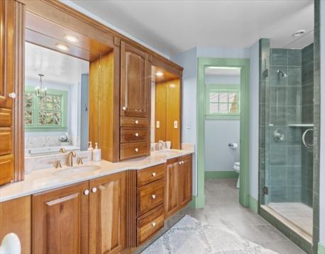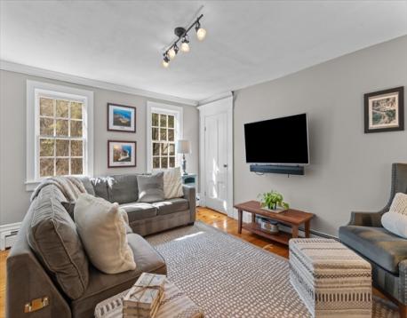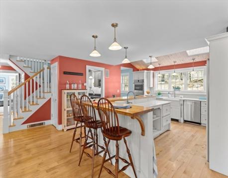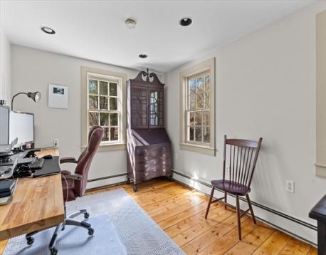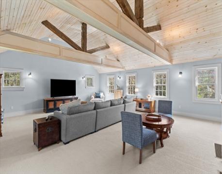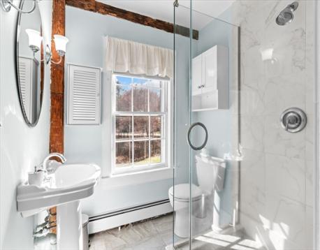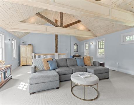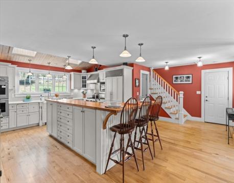 Modern Farmhouse Renovation, located on a one of a kind 9-acre property. This picturesque homestead underwent a comprehensive renovation in 2002, transforming the entire home and property with a new kitchen, working butler’s pantry, three new bathrooms, a spacious great room, two pantries, 2 home office spaces, oversized garage, updated mechanical systems, and modern amenities—all while preserving its timeless charm. A versatile layout designed for today’s lifestyle — perfect for multi-generational living, home office space, or guest accommodations. Masterfully renovated, this home showcases wide pine floors, hand-hewn beams & exquisite millwork. The expansive gourmet kitchen centers around an original hearth, blending old-world charm with a modern function. An added bonus room with soaring cathedral ceilings and barn beams adds a rustic elegance to everyone's current wish list Thoughtfully crafted for today’s lifestyle, this home offers privacy and beauty.