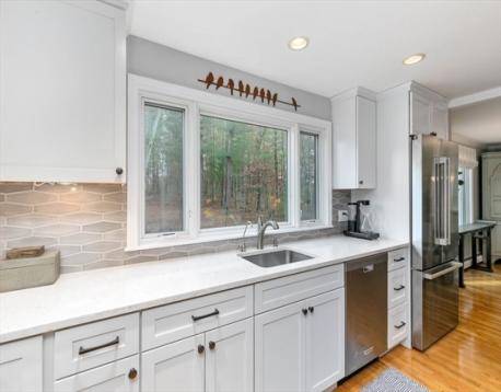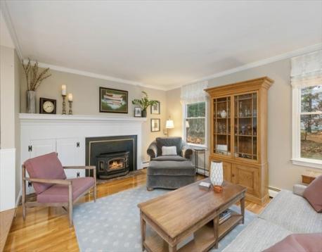 Stunning turn-key 4BR, 3.5BA Royal Barry Wills Colonial in one of Boxford’s most desirable neighborhoods! This beautifully updated home sits on a private 2+ acre lot with frontage on Towne Pond - kayak or ice skate right from your backyard! Direct access to the town forest with miles of trails to enjoy. Newly renovated kitchen with high end finishes opens to dining room and sunken living room w/wood stove, perfect for entertaining. Cozy family room with window seat, fireplace and cherry built-ins. Enclosed sun porch w/exposed brick and mudroom area with slider to a spacious composite deck with hot tub. Upstairs there are 4 spacious bedrooms + bonus area perfect for a teen or in-law suite. Huge workshop space in dry basement and a 3-car garage. New windows and fully paid for solar panels keep heating costs down. This comfortable home has been meticulously maintained and is ready for you to move right in and enjoy! Exceptional location with top-rated schools and easy access to Rt 95!