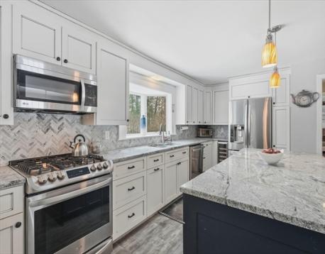 Located in a desirable East Boxford neighborhood, this spacious Colonial offers extensive updates and flexible living space. Renovated kitchen and baths, newer roof, heating system, 200-amp service, mudroom, and finished walkout lower level provide peace of mind and modern comfort. The open floor plan features an oversized kitchen island flowing to the formal dining room and cozy fireplaced family room. A formal living room with fireplace and ½ bath complete the first floor. Upstairs are four bedrooms and two updated baths. The newly finished lower level, with separate entrance, includes a kitchenette with dining area, game/media room, and office—ideal for extended living or work-from-home needs. Enjoy summer days by the private inground pool and backyard retreat. Convenient to top schools, trails, and commuter routes in sought-after Boxford. New approved 4-bedroom septic to be installed prior to closing. See attached feature sheet for additional updates and improvements.