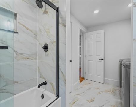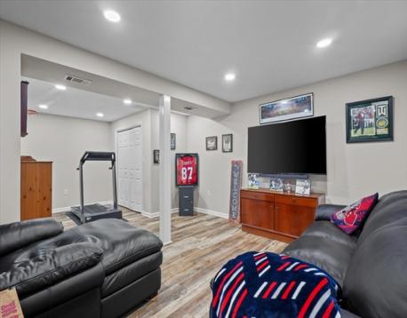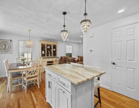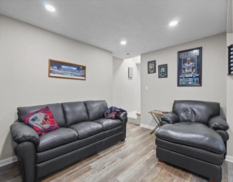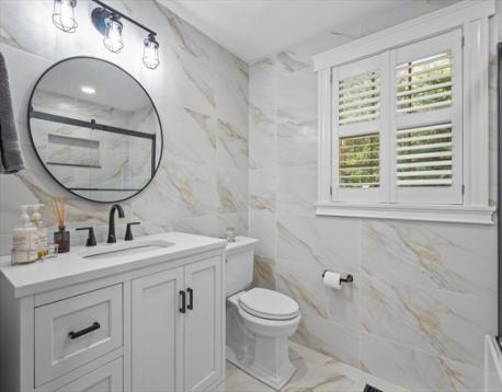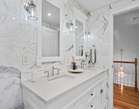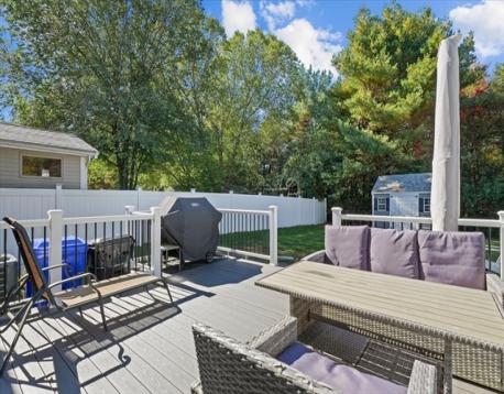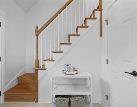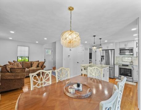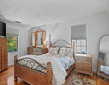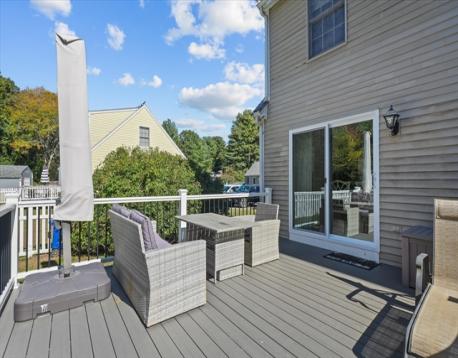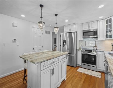 Welcome to this stunning, one-of-a-kind 3-bedroom home in the highly sought-after Andrews Farm neighborhood! Meticulously maintained & thoughtfully updated with high end finishes, this home offers the perfect blend of elegance and modern living. The open-concept main level showcases a custom-designed, top of the line kitchen seamlessly flowing into the bright & inviting dining and living areas. A versatile first-floor bedroom with an oversized closest serves perfectly as a home office, guest room, or den, complemented by a beautifully renovated full bathroom with convenient laundry. Upstairs, you'll find two generously sized bedrooms with exceptional closet space & a full bath with Italian marble floor to ceiling. Both levels are enhanced by gleaming hardwood floors throughout. The finished lower level offers additional living space, ideal for media room, playroom or home gym. Step outside through a brand-new sliding door & enjoy crisp autumn evenings on the Trex deck.