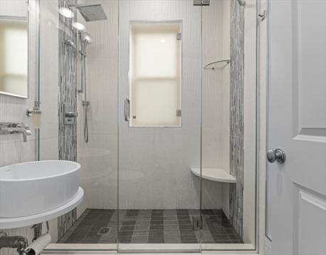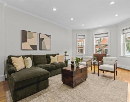 Stunning gut renovation (2015) in a stately brownstone in prime Washington Square area. This elegant 1st-floor condo offers nearly 1,400 SF w/ soaring ceilings, oversized windows & custom millwork throughout. Gracious foyer leads to formal dining room w/ large bow windows, crystal sconces & chandelier & detailed moldings. Front-to-back open living/kitchen layout ideal for entertaining. Custom white kitchen with ceiling-height cabinetry, granite counters, peninsula seating & stainless appliances (Fisher & Paykel refrigerator, 2-drawer dishwasher & Micro (LG studio gas range). Primary suite w/ oversized closet & spa-like bath with heated floors & towel rack. 2 additional bedrooms w/ generous closets & beautifully updated main bath. DEEDED garage parking + additional space, private washer/dryer, 2nd refrigerator, & secured basement storage. Close to Beacon St, MBTA Green Line (C), Longwood Medical Area, top-ranked Brookline Public Schools & exceptional dining. Turnkey & move-in ready.