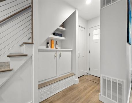 Located in the heart of vibrant Coolidge Corner is this renovated three bedroom townhouse with private outdoor space and one car garage parking. This condo has been renovated with modern detailing, cable handrails, cabinets, tile and light oak flooring. Step directly into this unit up a walkway from the street. First floor features a family room, kitchen and dining room which opens to a ground level patio. Kitchen features high-end Thermador appliances. The second floor has two bedrooms, full bathroom and laundry. The third floor has a primary suite with balcony and large walk-in closet. Large attic space provides lots of room for storage, in addition to a storage room in garage. One block from all the shops and restaurants on Harvard Street and close to parks/playgrounds and public transportation.