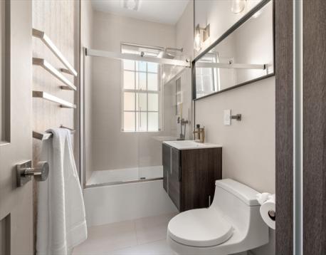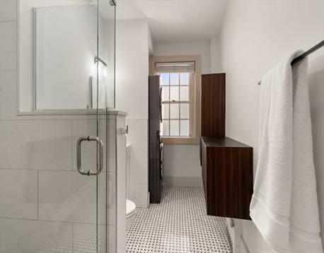 In the heart of Washington Square, this sun-filled corner residence has been thoughtfully renovated from top to bottom, featuring a modern, architect-designed layout and elevated designer finishes throughout. The open living space flows beautifully from a breakfast bar into a dedicated dining area and a generous living room anchored by a fireplace. The kitchen is finished to a high standard, with custom cabinetry that extends seamlessly into the dining space. The home offers two full bedrooms and two full baths, plus a versatile third room with a movable wall—ideal as a den, office, or third bedroom. One deeded parking space is included along with outstanding access to the C and D Green Lines, nearby parks, and the shops and restaurants of Washington Square.