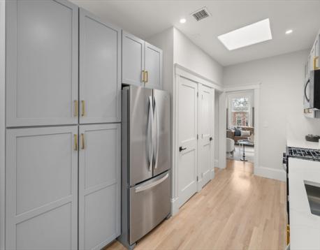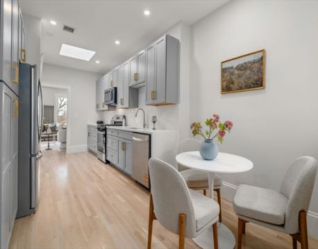 Welcome to this top floor unit in this classic brownstone in the heart of Brookline’s highly sought-after Washington Square. This beautifully maintained three-bedroom residence seamlessly blends classic character with thoughtful modern updates. Renovated eat-in kitchen and bathrooms provide contemporary comfort, while original details such as hardwood floors, elegant wainscoting, and crown molding preserve the home’s timeless appeal. The spacious layout is filled with natural light thanks to abundant windows and skylights, creating a warm and inviting atmosphere throughout the home. The updated kitchen offers both functionality and style, making it ideal for everyday living and entertaining. Enjoy the convenience of in-unit laundry and step outside to your private deck—perfect for morning coffee or relaxing at the end of the day. A unique feature is the exclusive roof rights, offering the opportunity to build a private roof deck with sweeping city views—an exceptional outdoor retreat.
