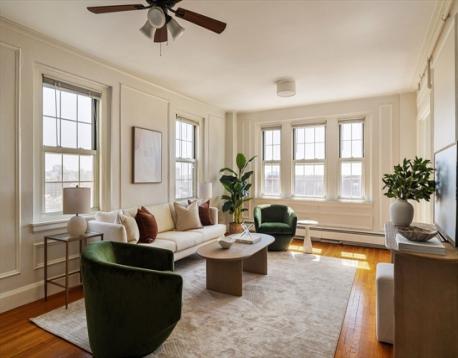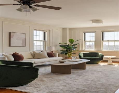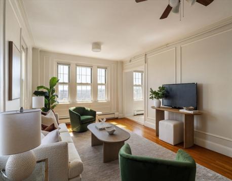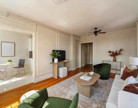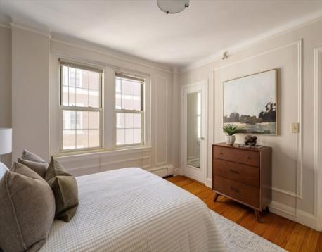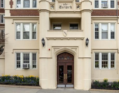 OPEN HOUSES CANCELLED. OFFER ACCEPTED. One of the premier one-bedroom residences in the historic Warwick Building, Unit 741 is among the largest by square footage, with a thoughtful layout maximizing space and privacy. Perched on a high floor in a coveted front corner position, the home showcases sweeping skyline views and exceptional natural light. The elegant and oversized living room impresses with high ceilings, classic molding and a ceiling fan. The kitchen offers ample cabinet and counter space plus room for eat-in dining. The generously sized bedroom comfortably accommodates a king-sized bed; the full bath includes a tub/shower combo. Freshly painted with recently buffed hardwood floors, storage is included. This is a pet friendly elevator building with a roof deck offering panoramic views, laundry facilities, gated garden area, bike storage and professional management. The Green line (C) stop is across the street.
