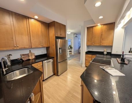 Spacious 4BD/2BA, 2700+ sq ft condo in coveted Coolidge Corner! Two levels of living feature exposed brick and gleaming hardwood floors. Main floor offers a large living room for both formal entertaining and casual relaxation around the fireplace, a well-appointed kitchen with new pantry and brand-new fridge, 2 generous bedrooms (both with walk-in closets) and a full bathroom. The expansive lower level boasts high ceilings and a versatile layout, with multiple areas for a family room, office and gym. It also includes 2 more bedrooms (one with loft), a 2nd full bath and a large storage room. Enjoy high efficiency heating and cooling with mini-splits throughout, plus a private, heated deck! This home includes 1 assigned parking space with the option to transfer a 2nd rental space nearby. Prime location steps to Lawrence School, C/D Green Lines, Longwood Medical and all the shops and restaurants Coolidge Corner has to offer.