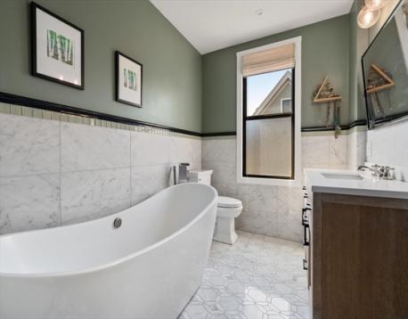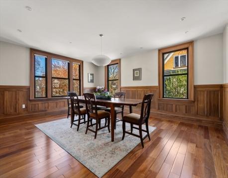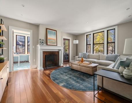 This beautifully renovated second-floor condo offers a seamless blend of high-end finishes and timeless period detail, featuring original doors with crystal knobs and wood wainscoting. A sun-filled living room with a classic fireplace opens to an adjoining office/sunroom. A grand, elegant dining room with wainscoting provides a perfect setting for entertaining. The well-appointed kitchen features stainless steel appliances, granite countertops, an eat-in island, and custom cabinetry, with a rear deck just off the kitchen, ideal for everyday living. The single-level layout includes three generous bedrooms and 2.5 baths, highlighted by a spacious primary suite with a soaking tub and walk-in shower. Additional features include a mudroom area, in-unit laundry, basement storage, and access to common space. Enjoy a .41-acre common yard, heated garage parking, and tandem driveway space, just two blocks to shops, restaurants, parks, schools, and the T in the Graffam-McKay Historic District.