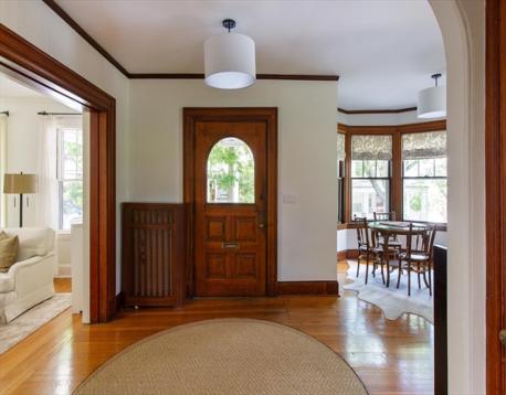 Coolidge Corner ~ This handsome 1892, six-plus bedroom, Victorian has been thoughtfully updated, blending its original architectural beauty with contemporary amenities. A lovely front porch leads to the main level featuring a gracious foyer with sitting area & grand staircase showcased by a large stained glass window, living room with fireplace, & beautifully appointed dining room with pocket doors. The well-designed kitchen, with custom cabinetry, granite counters & pantry, has access to the patio & gardens. A half bath completes this floor. The second level offers a luxurious primary suite with Juliet balcony & garden views; 3 other bedrooms; & full bathroom. The third level has 2 bedrooms, each with sitting areas & kitchenettes, & a full bathroom. The LL, with private entrance & access to the patio, offers flexible space for guests & family with full bathroom, kitchenette & home gym. 2026 driveway, 2022 roof & stove, 2021 heating. Blocks to T, restaurants, Ridley school & much more.