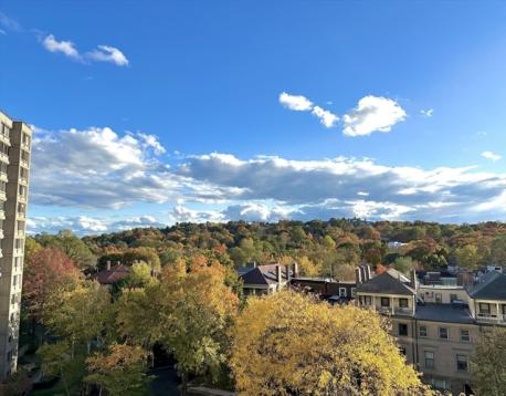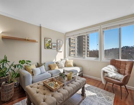 This captivating home blends urban convenience with peaceful living. Two generously sized bedrooms & an open living & dining area create effortless flow. Primary bedroom features a walk-in closet & bathes in natural light, while the 2nd bedroom offers the same sun-drenched comfort. All windows & your private balcony face the quiet Regent Circle, creating a perfect oasis for morning coffee or evening relaxation. Hardwood flooring throughout, a luxurious Jacuzzi soaking tub, & central AC complete this gem. Garage parking with elevator access means no weather worries. The building offers exceptional amenities: 24-hour concierge, fitness center, heated swimming pool, newly renovated 2025 common areas, roof deck, courtyard, & recreation rooms. A stone's throw from Washington Square's highly desirable restaurants & cafes, nearby Coolidge Corner & Cleveland Circle. Adjacent to Star Market with convenient access to the D & C lines. Come experience the lifestyle this home offers!