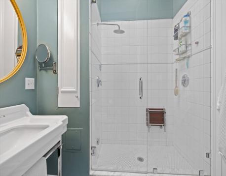 A one of one in Brookline – immerse yourself in this sun-filled penthouse that seamlessly blends timeless character with modern luxury. Upon entering, one is instantly impressed by the ultra-high ceilings, grand staircase, exposed brick wall, and modern lighting fixture. The open-concept layout provides a spacious living, dining, and kitchen area. The fully renovated kitchen features an oversized island, stainless steel appliances, quartz countertops, and a wine fridge. The recently renovated bathroom features an oversized steam shower, timeless vanity, and in-unit laundry. The two bedrooms offer custom closets, high ceilings, and storage space. A private roof deck—complete with water, electricity, and built-in furniture—provides an exceptional outdoor retreat with panoramic views of the city. Additional highlights include one direct off-street parking space and hardwood floors throughout. This pet-friendly, professionally managed building will appeal to the most discern.