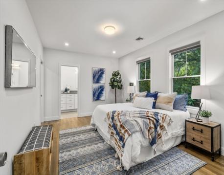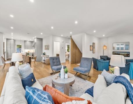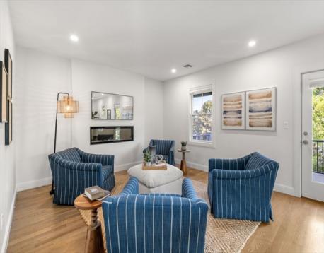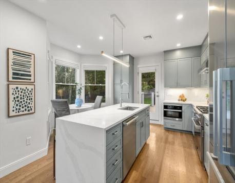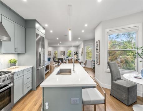 A high-end gut renovation in 2021, this gorgeous condo offers 4-bedrooms, 3.5 bathrooms, huge private fenced yard, front and rear decks, and 2-car garage! A private entrance leads to the main living level, featuring living room w/access to front deck (great city views), family room w/fireplace, dining room, and kitchen w/island, breakfast bar, Miele appliances, and bay window seating area perfect for morning coffee. This level also offers the primary bedroom w/walk-in closet and en suite bath w/double vanity, heated floors. Upstairs there are 3 bedrooms, 2 bathrooms, bonus room/office, laundry. Open the back door off the kitchen to find an oversized deck great for entertaining. This property is set on a double-sized lot, giving each unit its own uncommonly large, fenced yard. Located in a sought-after neighborhood. Convenient to shops/restaurants of Coolidge Corner and Washington Sq, schools, Corey Hill park, green C-line train. Easy commute to Longwood Medical area & downtown Boston.