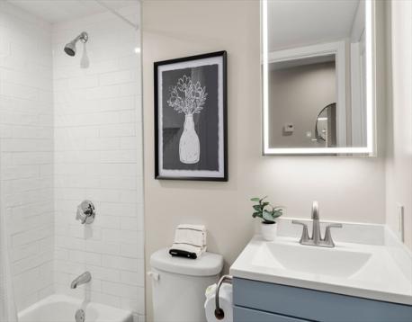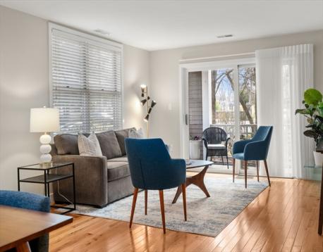 If you're dreaming of effortless living in a vibrant neighborhood, this Chestnut Hill condo will steal your heart. Picture mornings on your private deck overlooking lush landscaping, afternoons strolling to local favorite spots at The Street, and evenings enjoying nearby restaurants or a newly released movie. With a bright, open layout, this 2-bed, 2-bath condo features sleek wood floors, a renovated kitchen with quartz countertops and updated baths for a modern touch. The primary suite offers a tranquil retreat with its en-suite bath, while the in-unit washer/dryer and central A/C add everyday convenience. Elevator access to garage parking or minutes to the “T” make commuting or exploring Boston a breeze. Whether it’s shopping at Bloomingdale’s, grabbing coffee at Blue Bottle or hitting the gym at Equinox, everything you need is just minutes away. This beautiful condo is pet-friendly with trustee approval. Welcome to easy living!