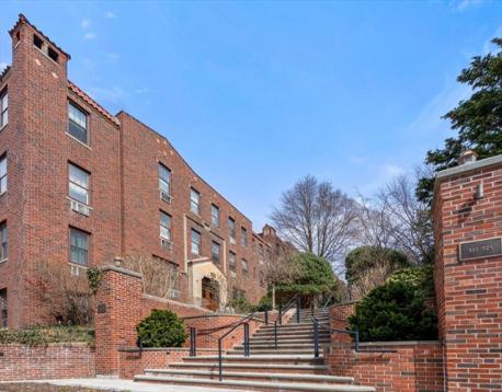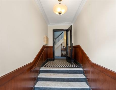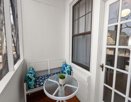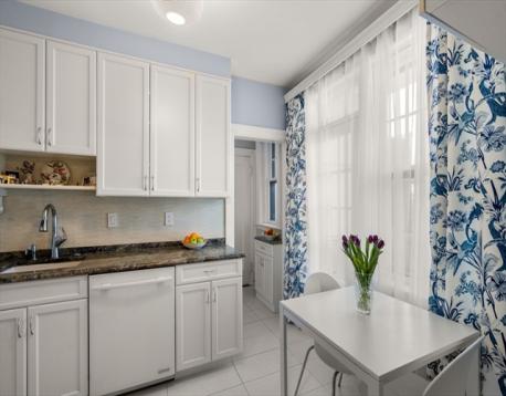 Beautifully renovated, sun-filled two bedroom, two bathroom unit at desirable The Terraces in Washington Sq. The expansive foyer is flanked on the right by a gracious living room featuring a fireplace with marble surround.The spacious formal dining room has glass paned doors to the renovated eat-in kitchen with high-end granite countertops, glass backsplash, high-end appliances, and large pantry. A beautiful screened-in porch off the kitchen offers a serene space for al fresco dining. The primary bedroom has spacious closets and an elegant bathroom with large tiled shower, Carrera marble floor, and stackable washer and dryer. The second bedroom has a large closet. The remodeled second bathroom has a tub/shower, Carrera marble floor, and decorative marble tile. Assigned parking. Large windows, high ceilings, wood floors, and decorative molding throughout. Close to 'C' and 'D' Green line trains, supermarkets, and the numerous restaurants and coffee shops in Washington Square.