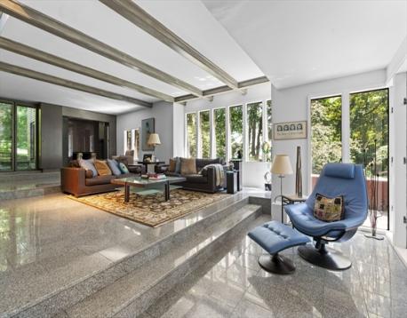 Location, Location, Location! 41,000+ square feet of land! Great opportunity to live in this unique contemporary home, add on or build your dream home on this site! The current home features 4 levels of living space with windows galore, many opening to patios, decks or balconies. 3 ensuite-bedrooms, 3 full and 1 half bath. The home offers 3 fireplaces adding warmth and a comforting glow. The kitchen is the heart of the home with generous center island, walls of glass and windowed alcove for dining as well as a spacious desk area. There is a large home office, that makes working from home a pleasure. The office could double as a 4th bedroom. Cool upper level loft serves as a meditation space with fireplace and balcony! Great walls for art and the hallways are truly galleries. Such fabulous spaces inside and out for entertaining. Updated systems. Lovely grounds. Spacious 2-car garage with ample storage.