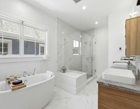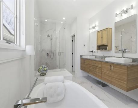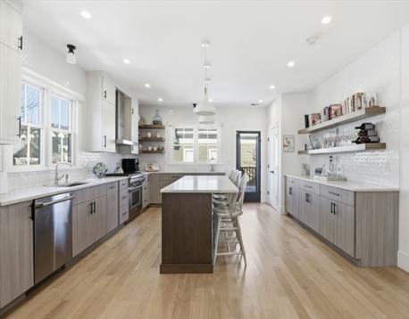 Located in a prime Coolidge Corner location is this stunning 5-bedroom, 4-bathroom duplex offering unparalleled comfort & style. Boasting 3,234 sq. feet of impeccably designed living space, this residence features a chef's kitchen equipped with Thermador appliances & a welcoming island that leads to an entertainment-ready deck.The expansive dining area seamlessly flows into the family room, complete with a fireplace & custom electric shades. Relish in the luxury of the primary suite, presenting beautiful built-ins, a spacious walk-in closet & a bath with a soaking tub, double sinks & a glass-enclosed shower. An add'l bedroom & full bath complete the main level. The upper floor offers a vibrant game room with a wet bar, 3 add'l bedrooms, 2 full baths, laundry, add'l deck & ample storage space. With garage parking plus an outdoor spot (2 parking), soaring ceilings & exquisite hardwood floors throughout, this property truly defines modern living. Minutes to shops, schools, transportation.
