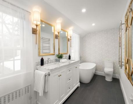Elegant Colonial ideally located between the coveted Fisher Hill and Chestnut Hill neighborhoods. This classic home offers gracious living spaces including a welcoming living room with fireplace, formal dining room, and a charming butler’s pantry leading to the eat-in kitchen. The kitchen opens to a spacious sun-filled family room with vaulted ceilings and access to a sunroom, stone patio, and deck, offering wonderful indoor-outdoor living. The second floor features a generous primary suite with two walk-in closets and a beautifully renovated spa-like bath with heated floors and soaking tub, along with two additional bedrooms and a full bath. The third floor offers two more bedrooms and another full bath. A bright walk-out lower level includes a large above-grade family room with full-size windows. Beautiful yard with mature trees. Convenient 1-car attached garage. Close to shops, restaurants, Hayes School, Chestnut Hill Reservoir, parks, and public transportation.