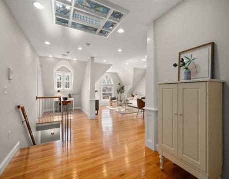 Rarely available 3BR/2BA top-floor condo in a stunning Gothic Revival residence on the National Registry of Historic Places. This 1,635 sq. ft. home was completely renovated in 2012, seamlessly blending historic character with modern luxury. Enjoy a bright, open layout featuring a quiet home office nook perfect for remote work, central AC, in-unit laundry, and basement storage. Step outside to your own private patio and fenced yard—a true urban oasis. This unit includes 2 dedicated parking spaces and is part of a boutique, owner-occupied 4-unit association. Unbeatable Location: Steps to C & D Green Lines and bus routes to Longwood Medical & Harvard. Walking distance to Pierce Elementary, Brookline High, and the vibrant shops/dining of Brookline Village, Washington Square, and Coolidge Corner. Pet-friendly and perfectly positioned for the best of Brookline living. Welcome home! Open Houses Saturday 4/18 & Sunday 4/19 from 12-2PM. Offers due Tuesday 4/21 by 12 noon.