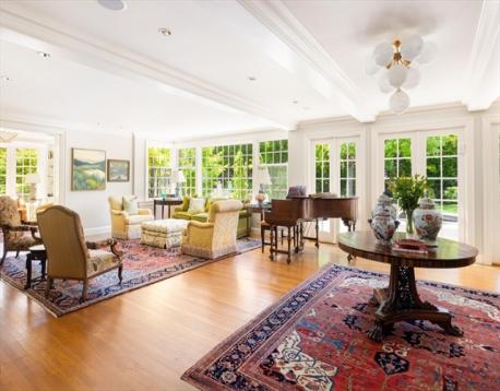 This spectacular residence, set on 4.5 acres in the prestigious Brookline Estate area, has been renovated and is surrounded by private, scenic landscapes. The interior, distinguished by its grandeur and elegance, is adorned with intricate period details, beautiful woodwork, and bright spacious rooms. The grand 13 rooms include a double living room with picturesque views of the gorgeous, expansive grounds. There are 6 bedrooms, one of which is the luxurious primary suite. The meticulously designed grounds feature several unique amenities, including a stunning terrace patio expanding the length of the home, an in-ground swimming pool with fountain and whirlpool artfully integrated with a stone cliff, fully equipped cabana, koi pond, private tennis court, putting green, and magnificent hardscaping. The property also has a three-bedroom cottage and a two-bedroom unit above the free-standing garage. Near fine shops, restaurants, and Downtown Boston.
