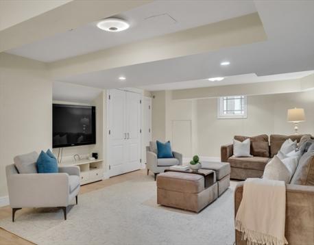 Located on a quiet, residential street, this spacious contemporary residence offers 6,200 sq ft of living space with 5 bedrooms and 4.5 bathrooms. Thoughtfully designed, this home balances scale and functionality across expansive, light-filled interior spaces. Kitchen opens to adjoining family, dining spaces and patio. 1st floor bedroom with en-suite bathroom. 1st floor office/music room provides flexible work or recreation space. 2nd level spacious primary suite with fireplace, luxurious bathroom including stall shower and jacuzzi, walk-in closet and balcony. Three well-sized bedrooms provide versatility for family/work space. Finished lower level with garage access, mud room, extra storage space, large recreation room, fitness room, and full bath. 3-car garage, a rarity in this urban location, heated driveway, and the property’s efficient footprint allows for a low-maintenance lifestyle without compromising interior volume. Located near all Coolidge Corner has to offer. A rare find!