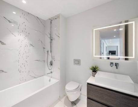 Introducing Walnut Crossing! Newer construction luxury building located in the heart of Brookline Village near shops, Starbucks, Trader Joes & bustling shops & restaurants of Brookline. Conveniently located near D train (green line) to Boston College, Longwood Medical area + downtown Boston. Two bedrooms, two bathrooms with a contemporary open floor plan + high end finishes. Gourmet kitchen with exquisite quartz countertops, custom cabinetry, top-of-the-line Bosch appliances + 5 burner gas stovetop. Spa-like baths with marble surround, Hansgrohe faucets, smart LED mirrors and floating vanities with lighting underneath. Oversized windows allowing for an abundance of natural light, in-unit LG washer and dryer + central heating/cooling. Pet friendly & garage parking. Building offers additional amenities such as a gym, beautiful roof deck & elevator to maximize comfort and convenience for today’s urban lifestyle.