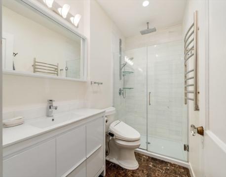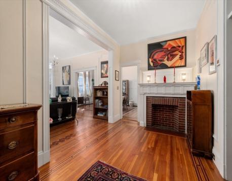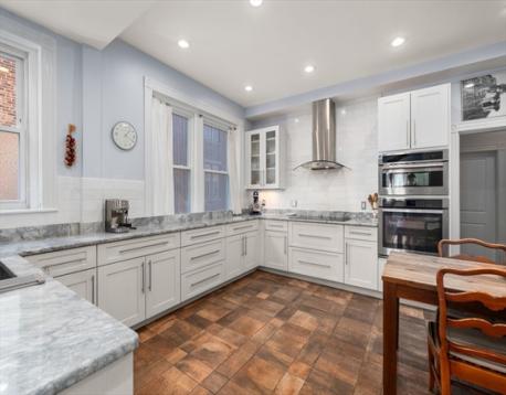 Located on a beautiful tree-lined street in Coolidge Corner, this elegant 4-bed, 2-bath, 2,116 sq ft condo in a stately limestone brownstone combines modern refinement with period grandeur. Elevated above the street for privacy, the gracious foyer with fireplace opens to a sun-drenched living room with leaded glass transoms, crown molding, and spectacular inlaid hardwood floors. The wainscoted dining room with custom built-ins seats a crowd. The renovated kitchen offers quartzite counters, custom cabinetry, marble tile, and a sun-filled eat-in area. Both marble bathrooms feature radiant heat floors and towel warmers; one adds a soaking tub. The primary suite enjoys two exposures and a spa-like en-suite bath. Three additional bedrooms, private home office with French door, in-unit laundry, and a vast private basement storage room complete the picture. Convenient to acclaimed dining, boutique shopping, top schools, the Green Line, and Longwood Medical.