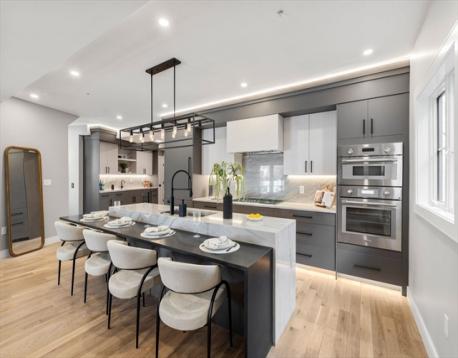 This stunning new construction condo has it all - 3 beds, 3.5 baths, elevator, 2-car garage, private fenced yard w/deck and patio! Inspired design and exceptional attention to detail combine to create a sophisticated, comfortable and versatile living environment. Elegant living room features gas fireplace, built-ins, and French doors that open to deck/yard, allowing for easy indoor-outdoor lifestyle. Well-appointed kitchen offers Thermador appliances, custom cabinetry, large island w/breakfast bar, dining area, wet bar, pantry. Family room offers flexible use as media room, playroom, home office. First-floor bedroom suite features spa-like bathroom. Upstairs primary bedroom suite is a sanctuary, complete w/luxurious bathroom, walk-in closet, balcony. Second floor has add’l bedroom with en suite bath, plus laundry area. Private elevator access from garage to all floors. Front entrance w/mudroom area. Convenient to shops, restaurants, schools, public transp’n, Longwood Medical, downtown.