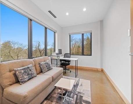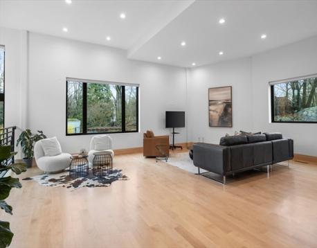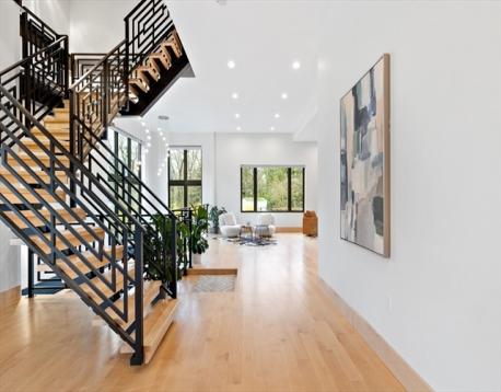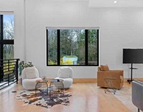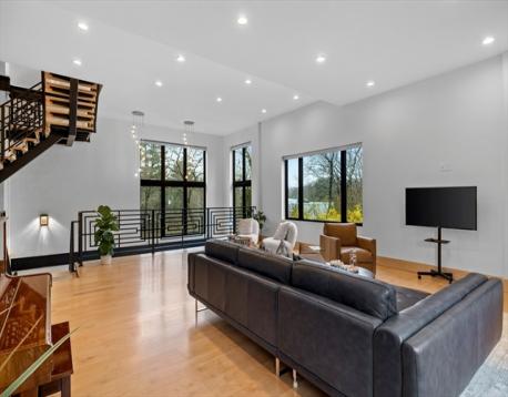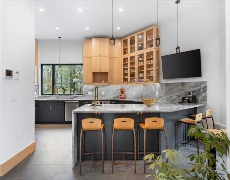 This contemporary masterpiece in Brookline boasts solid, soundproof construction in a tranquil setting among the trees. With an open floor plan that allows for maximum customization of the space — 71 Grove features enormous picture windows that offer abundant natural light, massive living and dining areas, and a state-of-the-art custom kitchen that is sure to impress. Take advantage of 5 total bedrooms including a primary suite bathroom with a soaking tub and spacious shower. Entertain on one of two large outdoor decks complete with stone fire pit. Additional features include a balcony, two-car garage, heated driveway, and in-law suite. Take advantage of easy access to area shops and restaurants and close proximity to the Fenway area and downtown Boston. The ultimate living experience awaits.