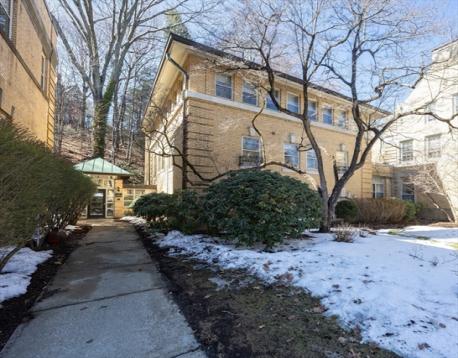 Highly desired Brookline Olmsted Park Condominium! This one bedroom,1 bathroom unit positioned on the second level with serene garden view. Well maintained grounds of Olmsted Park. 809 square feet, this unit has an open floor plan with central air, many windows allowing bright natural light to flow in. Beautiful kitchen with plenty of cabinets for storage and convenience of a washer/dryer stackable in unit. Range/oven, refrigerator/freezer and dishwasher. Spacious bedroom, with tranquil ensuite bathroom with tiled walk-in shower. Closet has abundant shelving. Convenient storage space located within the same building. Unit includes one deeded parking space and unassigned guest parking spaces. The common area offers additional laundry room, cozy reading room, a convenient exercise room, and on-site superintendent and professional management. Pets are allowed. Convenient to Brookline Village, Longwood Medical, universities, T-station and relax walking paths at picturesque pond