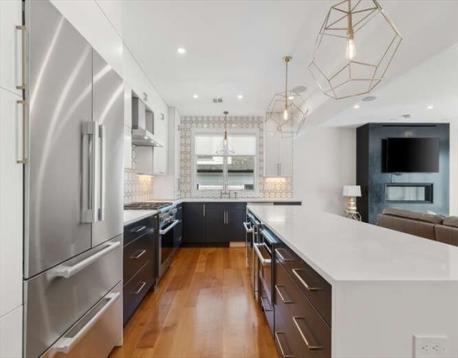 This 4-bedroom 4 full-bathroom state-of-the-art condominium boasts unprecedented finishes. Amenities include a private elevator, 6” wide white oak flooring, oversized windows, integrated smart home technology, private outdoor space, and two garage parking spaces with electric car charging available. The custom kitchen is equipped with quartz and marble counter tops, stylish two-tone cabinetry, oversized kitchen island, and a top-of-the-line appliance package by Miele®. Jillian Balcony in the dinning area, private balcony in the master bedroom. The expansive 2610 square feet of living area unfolds across a single story, presenting a residence of considerable proportion and seamless movement. Located minutes away from numerous restaurants, shops, and public transportation. This novel home blends the brilliance of 21st century home design with the charm of Brookline's architectural traditions. Walking distance to Pierce and Brookline High. Fully furnished with designer Window's treatment.