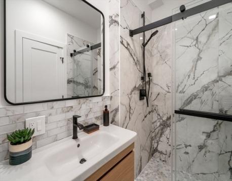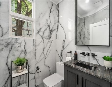 Sophisticated contemporary home totally transformed in 2022 by a prestigious luxury developer. Meticulously crafted for modern living with 5500+ sq ft including two additional suites with kitchenettes & private entrances designed as In-Law/Au-Pair apartment + home office. Spectacular living room with 6' linear gas fireplace complimented by a 8' wide granite wall. Extraordinary chef's kitchen with quartz countertops & massive 10 foot center island. Wolf/Subzero/Thermador appliances, 2 dishwashers, 2 sinks, professional hood, micro lift, dual wine fridge & breakfast sitting area. Dramatic primary bedroom suite with marble fireplace, walk-in closet, balcony & spa-like bath with glass enclosed shower & soaking tub. Top floor offers yoga/studio/office. Sprawling roof deck with breathtaking views of downtown Boston & Prudential. Exterior bluestone patio, gas fireplace perfect for entertaining. 6 parking (2 garage), smart home technology & surround sound complete this exceptional residence!