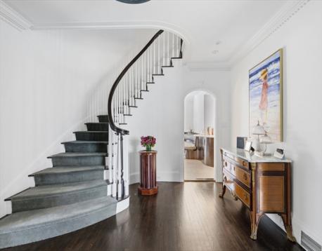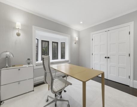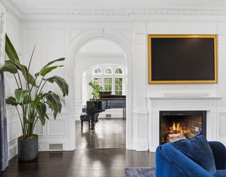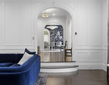 98 Carlton Street is an extraordinary 1935 English Revival residence in Brookline’s coveted Cottage Farm Historic District, blending architectural pedigree with an exceptional standard of restoration. Prominently sited on a corner lot in one of the single-family neighborhoods closest to Back Bay, the home offers rare convenience with a setting defined by history, scale, and character. A comprehensive 2022–2025 capital improvement program thoughtfully addressed major structural, exterior, and mechanical systems, including slate roof repairs, full chimney reconstruction, masonry and stone restoration, wooden gutter replacement, boiler and HVAC upgrades, irrigation improvements, and enhanced electrical and security systems. Inside, richly detailed entertaining spaces are complemented by a refined Waterworks bath, bespoke De Gournay dining room installation, restored stained glass, curated designer lighting, and premium Wolf, Sub-Zero, and Miele appliances.