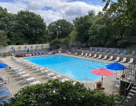 Your ideal Brookline lifestyle awaits at The Brook House! This exceptional, fully updated, sizable one-bedroom, one-bath, south-facing unit offers resort-style living with abundant natural light and a private balcony with city views. The home boasts a hardwood floor, a kitchen with upgraded appliances, and a modern full bathroom. Enjoy an extensive list of amenities, including a state-of-the-art fitness center, a heated swimming pool, tennis courts, and 24/7 security. This pet-friendly building includes a comprehensive HOA fee that covers most utilities and an assigned heated garage parking space. Located across from the scenic Emerald Necklace and Leverett Pond, you're moments from public transit and Brookline Village shops. Low property Tax! This is truly a gem! Garage parking: P365.