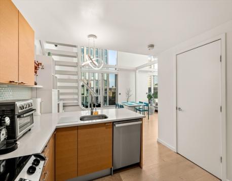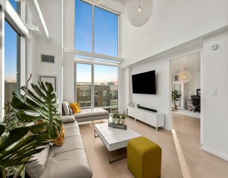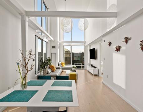 One-of-a-kind bi-level penthouse in the Sierra building at the highly sought-after “Sierra + Tango” complex in Cambridge Crossing. This sun-drenched corner unit boasts southeast-facing, double-height floor-to-ceiling windows with sweeping views. The open-concept layout flows effortlessly through the kitchen, dining, and living areas, creating an ideal space. The main level includes a spacious bedroom with walk-in closet and en-suite bathroom, a large walk-in coat/storage closet, and a convenient half bath for guests. A stunning floating glass staircase leads to a mezzanine-style loft, perfect as an office, lounge, or flex space, complete with its own full bath and walk-in closet. Upstairs, the primary suite features built-in wardrobes, en-suite bathroom, and breathtaking views. This is the only bi-level unit in the building offering 2 bedrooms, 2 full bathrooms, and 2 half baths - truly a rare opportunity. If you're looking to live like royalty, this is your castle in the sky!