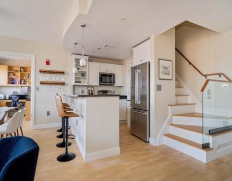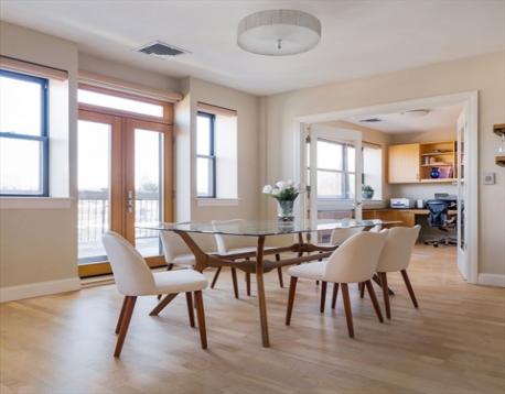 Welcome to one of Cambridgeport’s most coveted penthouses at Dana Park Place. This sun-drenched residence pairs serene views with premier urban living. The elegant open living and dining area is wrapped in natural light and opens through French doors to an east-facing private deck, perfect for refined entertaining. The well-appointed kitchen features stainless appliances, granite countertops, plentiful white cabinetry, and a walk-in pantry. A flexible floor plan offers a custom-built home office plus two spacious bedrooms and a shared bath upstairs, along with a luxurious primary bedroom suite with a jacuzzi tub and large walk-in closet. Enjoy garage parking, central air, and in-unit laundry. Full-service elevator building with professional management, weekday concierge, fitness center, event space, and bike storage. Moments to the Charles River, Central Square, MIT, dining, shopping, and Red Line MBTA. This is the one!
