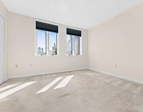 Located in popular River Court Condo- rarely available 1 bedroom with 2 self park garage spaces included in list price, in the same row on same level, including one oversized space. Overlooking the reflecting pool from living room with Juliette balcony, and park and city skyline view from the bedroom, the open concept living/dining and kitchen area has wonderful natural light. The well appointed kitchen with cherry color cabinetry, offers good storage and prep space, SS appliances and granite countertops. The bedroom has 2 of the 4 total closets and lovely city skyline views. There is AC and in unit washer + dryer. Additionally, there is one of the largest and most spectacular common roof decks in the city with 4 panoramic exposures. 24 hr concierge, 2 guests suite rentals available for residents guests, plus an indoor lap pool & fitness room, both on the 1st floor. Convenient to the Kendall Sq restaurants, MGH/MIT, Esplanade paths, WF plaza, TJ 's and major commuter routes.