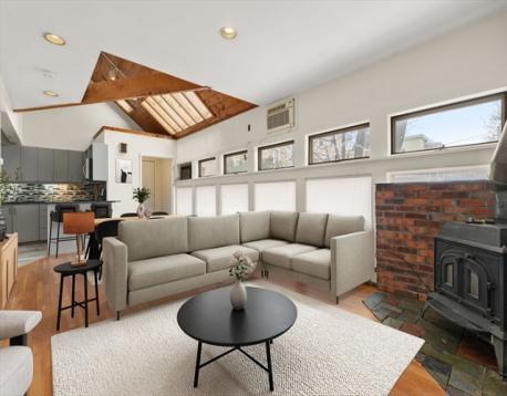 Unique contemporary townhouse in North Cambridge featuring vaulted ceilings and abundant natural light. The recently renovated kitchen and bathroom complement an open-concept first floor with hardwood floors and first-floor laundry with newer washer and dryer. A versatile first-floor bedroom offers direct access to the rear deck, extending the living space outdoors. Additional storage is available in the loft area above. The ground level provides a flexible living area with a full bathroom; renovations are needed, creating an opportunity to personalize the space to fit your needs.Conveniently located near Alewife Station, Davis Square, and the Minuteman Bike Path, the home offers excellent access to transit, recreation, and Cambridge amenities while maintaining a private residential setting—well suited for flexible living and work-from-home needs.