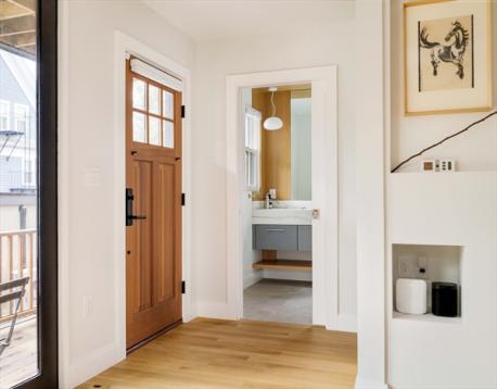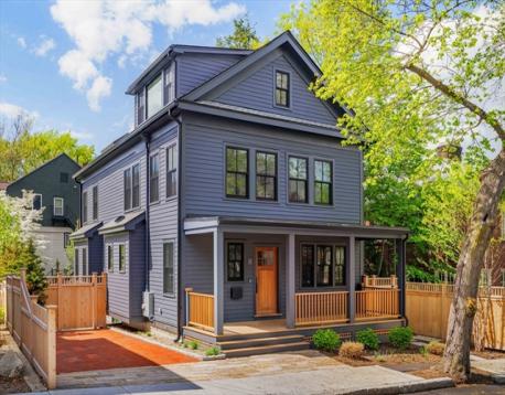 Mid-Cambridge. Tucked on a quiet one-way street close to Harvard, Inman, and Central Squares, 11 Goodman Road is a light-filled single-family where meticulous craftsmanship and thoughtful design come beautifully together. The first floor is open and airy, with living spaces flooded with natural light, a well-appointed kitchen with seating area, separate dining room, and mudroom. Upstairs, the soaring primary suite offers skylights, a private deck, and a Zen-like bath. Two additional bedrooms share a bright hangout nook, while the top floor adds bonus space with an integrated hammock loft. The finished walk-out lower level includes a family room with custom built-ins and a fourth bedroom. A rare detached studio adds flexibility: ideal for remote work, a makerspace, a music studio, or anything that needs space apart. Brick and granite driveway, 2-car EV-ready parking, three porches, fenced yard, irrigation, and solar panels complete a home that is as practical as it is beautiful.