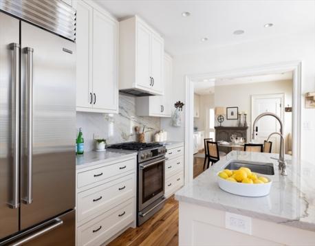 Originally designed as a “forever pied-à-terre,” this 2021 gut-renovated residence reflects a level of investment rarely seen. Taken to the studs, this comprehensive transformation went well beyond cosmetic updates to include new plumbing, electrical, HVAC, and a whole-house water filtration system. The exterior features cedar siding, copper flashing, and mahogany porches. Inside, sunlit spaces boast a gas fireplace with custom marble and integrated sound. A stunning kitchen offers full inlay cabinetry, Sub-Zero/Miele/Bosch appliances, and granite counters. The layout flows into a dining room with bespoke built-ins and a dedicated laundry/pantry corridor with a quartz utility sink and Miele W/D. A year-round sunroom with shiplap detail leads to the yard, while the primary ensuite offers a marble-wrapped soaking tub. The rebuilt lower level adds a second laundry and heated cedar closets. Ideally located near Inman Sq’s Cambridge Street corridor with easy access to MIT and Kendall Sq.