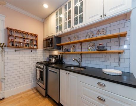 Updated and versatile space with two levels of living. First level has open living space with updated kitchen, SS appliances, a full bath and a room that has options to be used as a bedroom or home office with private exterior entry. There are also exclusive use front and back porches on this level. A spiral staircase leads to another living level with family room, kitchenette, 3 bedrooms, a full bath, laundry room and large 3 season porch/mudroom. Great storage and closet space throughout the unit. This level can be closed off from upper area to offer two separate/private living levels with income potential. Enjoy Cambridgeport location, walkable to Charles River, Central Sq, MIT, Trader Joes, Whole Foods, Easy access to downtown Boston, Medical district, Turnpike, etc.
