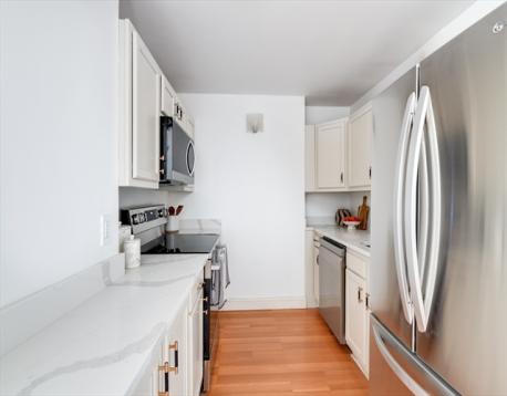 Just outside of Harvard Square - Rarely available 7th-floor condo in an elevator building with generous living space, and an unbeatable location directly across from Harvard Law School. This spacious 2-bedroom, 2-bath residence features an open & inviting floor plan with beautifully refurbished parquet floors, a charming stone mantel fireplace, and a private screened in Balcony. The bright, refreshed kitchen showcases brand-new stainless steel appliances, elegant Calacatta countertops, and attractive cabinetry, creating a stylish and functional space ideal for both everyday living and entertaining. The home offers two full bathrooms, central air conditioning, and spacious bedrooms, including a primary suite with a walk-in closet. This professionally managed building offers two recently replaced elevators, laundry on every floor, and one assigned off-street parking space. Ideally located steps from Cambridge Common, easy access to the Red Line, as well as restaurants, shops, on Mass Ave