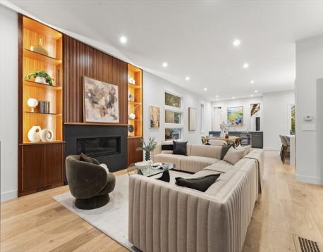 Serene cozy tree studded sanctuary on Strawberry Hill...stunning GUT RENOVATED CONTEMPORARY... CUSTOM CRAFTSMENSHIP THROUGHOUT. Luxury Open Floor Plan with GORGEOUS FIREPLACED SUNSPLASHED LIVING RM. Oversized MARVIN WINDOWS and 10 ft clngs. Excquisite three story bespoke staircase wrapped in white oak with black ballisters. Quality designer touches everywhere! LUXURY CHEF'S KITCHEN w/ MIELE APPLIANCES AND 8 ft quartz brkfst islnd. Separate side wine bar/station and double sliding glass drs overlooking professionaly landscaped yrd w/ large deck. Seven Inch White Oak Engineered Hrdwd Flrs. Fantastic Master Suite with breathtaking corner bank of windows. HUGE 35' x 26' FAMILY ROOM...can easily accomodate an aupaire or 5th bdrm. A perfect family home just around the corner from Golf, Parks, Playground, Fresh Pond Reservation Trail... Supermarket literally around the corner. Completely insulated w/ Exceptional Energy Efficiency. Caseta Lutron Light Switches. FENCED IN PRIVATE ENCLOSED YARD