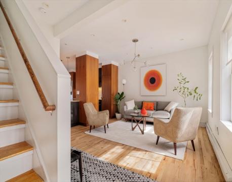 Cambridgeport ~ Developed by acclaimed Cambridge architect David Aposhian and reimagined with Top Boston interior designers, this classic townhome is a sophisticated and highly livable expression of modern family living. A complete renovation elevates every detail—from custom baths to thoughtfully crafted interiors—balancing playful design with everyday function. The stunning kitchen is a true centerpiece, blending walnut and glossy cabinetry, paneled walls and ceilings, dining nook with banquette, abundant built-ins and storage. Three bedrooms are privately arranged on the upper levels, while the lower level offers a versatile family, media, or craft room with built-ins and a beverage station. Set in leafy, hip and family friendly Cambridgeport, moments to Central Square, the Charles River and parks, a fenced bluestone + gravel patio, exterior shed, basement storage plus off-street parking, complete this exceptional offering—perfect for those seeking design, comfort, and connections